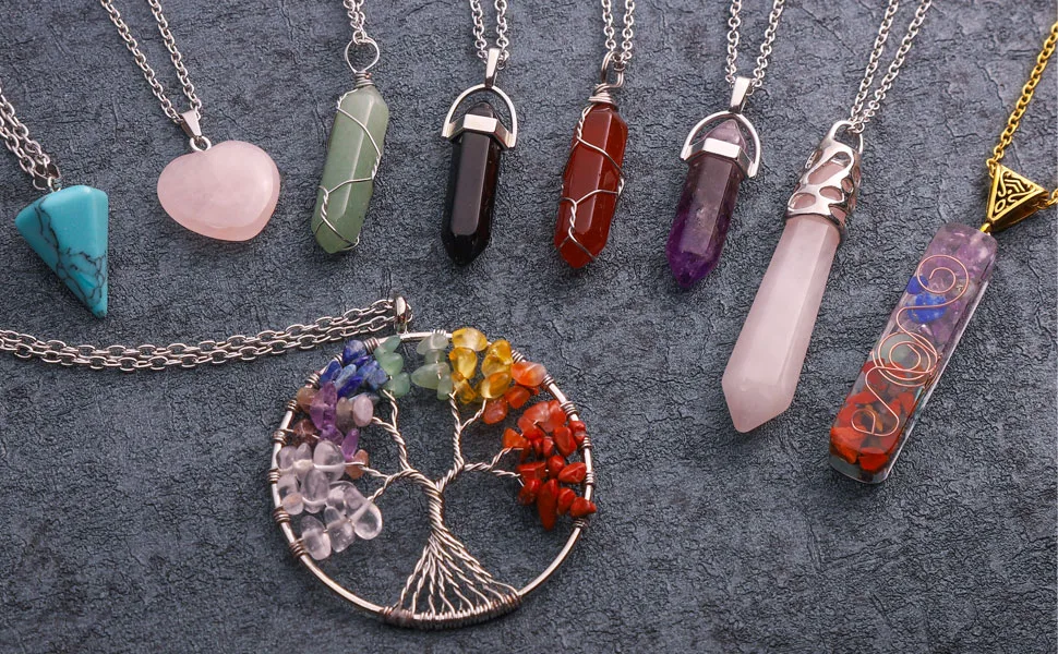 Curación collares de cristal están hechos de diferentes tipos de cristales y metales. También se presentan en una variedad de formas y tamaños. De collares de cristal, Desde colgantes de cristal hasta collares de piedras y amuletos, puede elegir entre varios collares de cristal para satisfacer sus diferentes necesidades y preferencias de estilo.