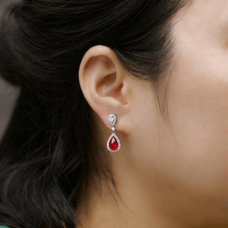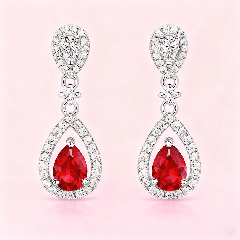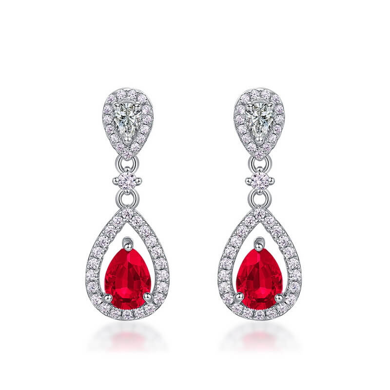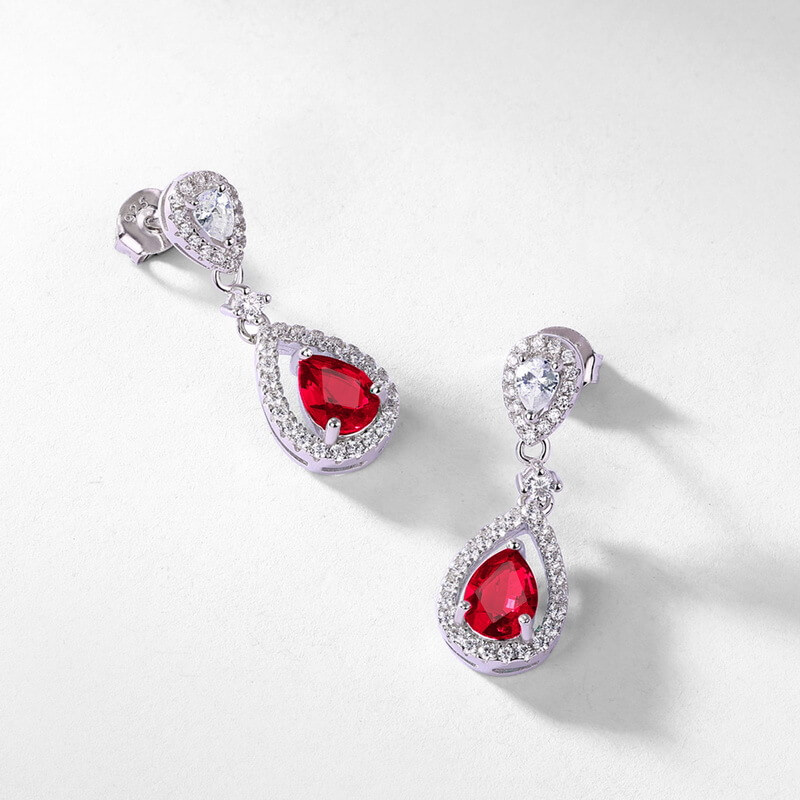 The ruby is the birthstone of July, which means prosperity, love, and passion. Give your loved one these ruby earrings dangle, and let the sparkling red shine around your neck.