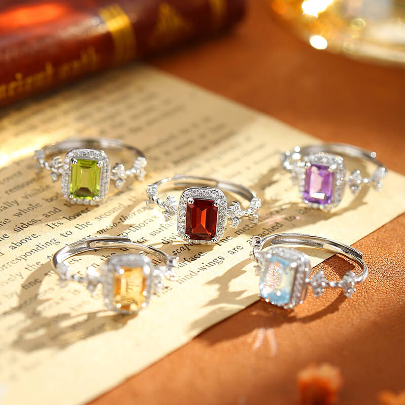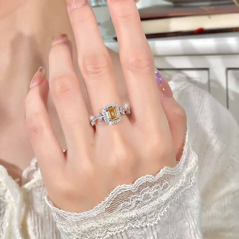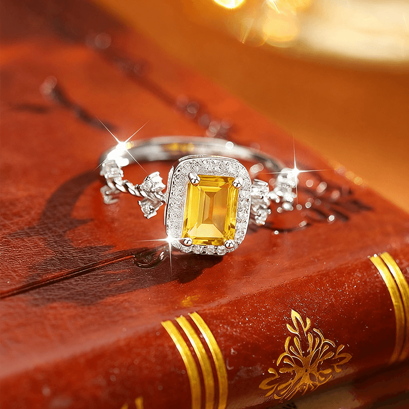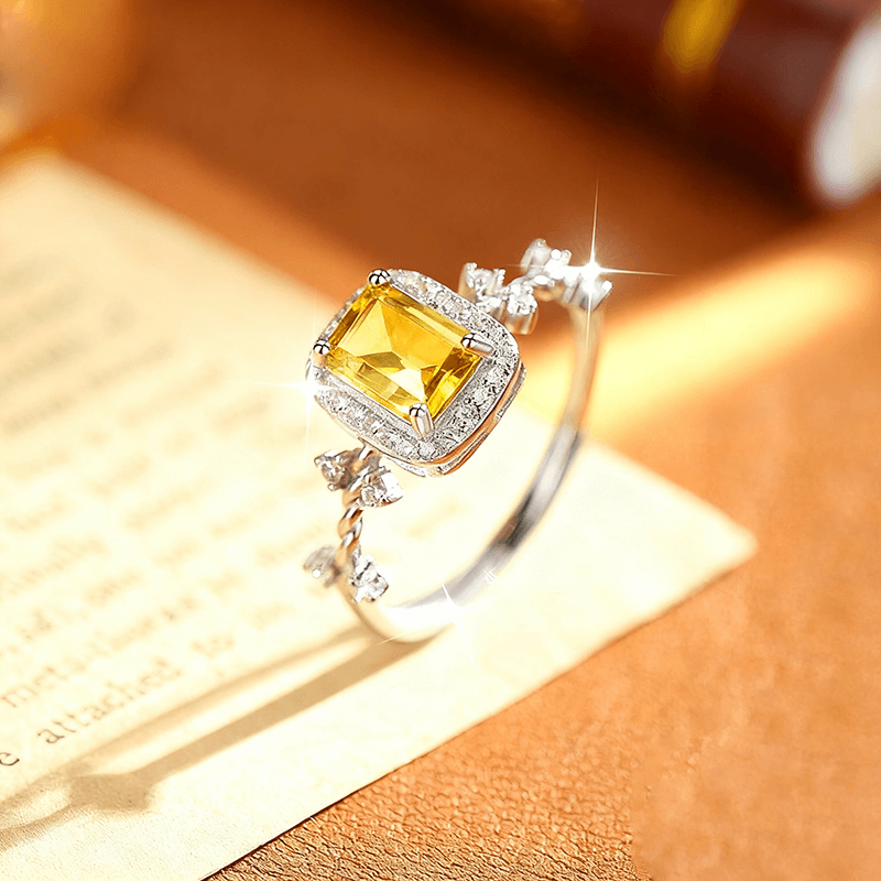 Delicate 925 Sterling Silver Square Cut Citrine Birthstone Ring