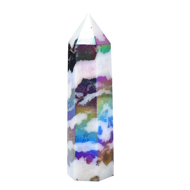 The rainbow zebra quartz crystal tower not only possesses the calming energy of the zebra stone but also the vibrant energy of the rainbow light. It can make your life more harmonious, balanced and stable.