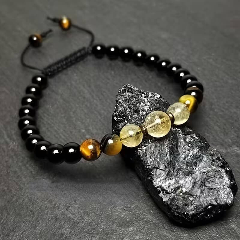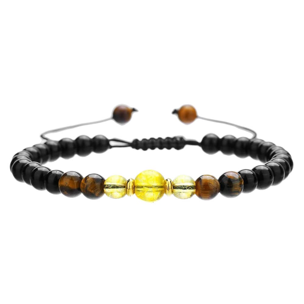 Adjustable Handmade Tiger Eye & Citrine Beads Bracelet