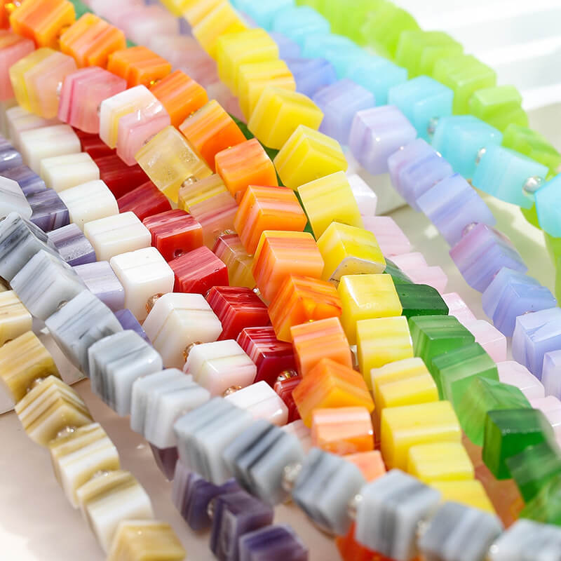 The item includes 13 types square Nepal spacer glass beads, all of them are gradient colors.