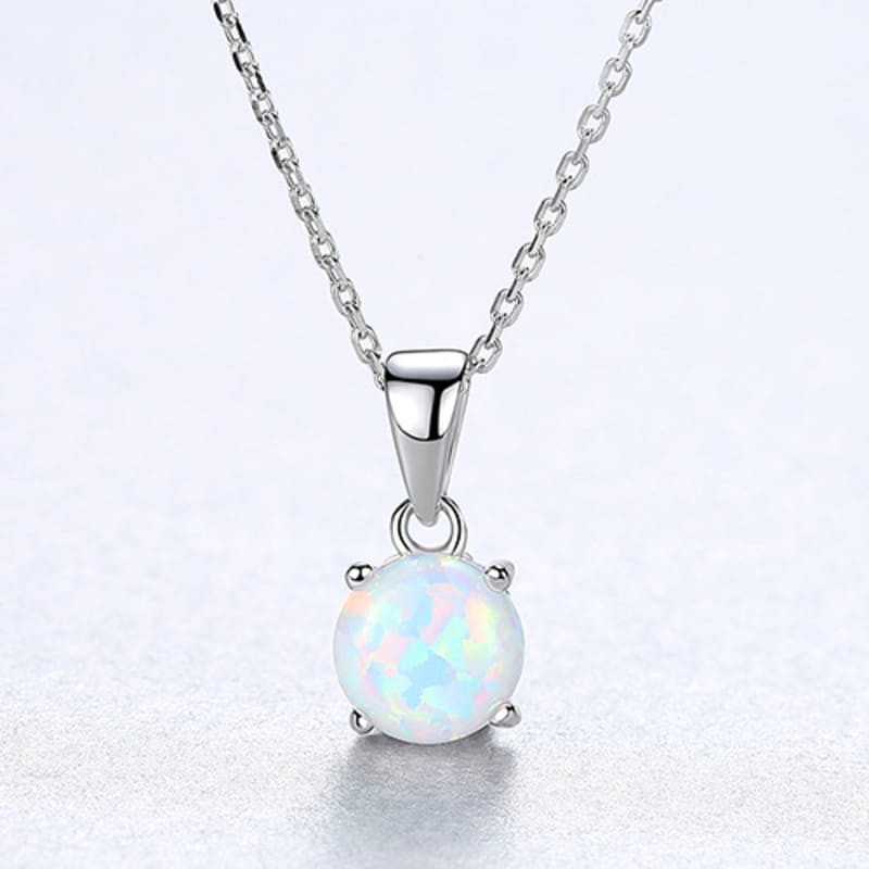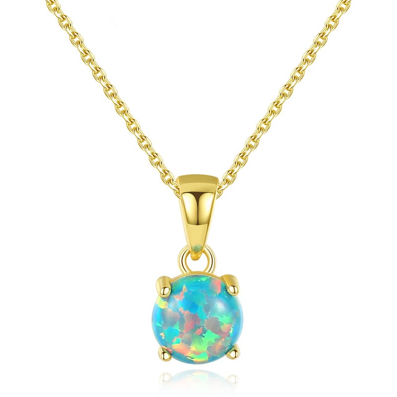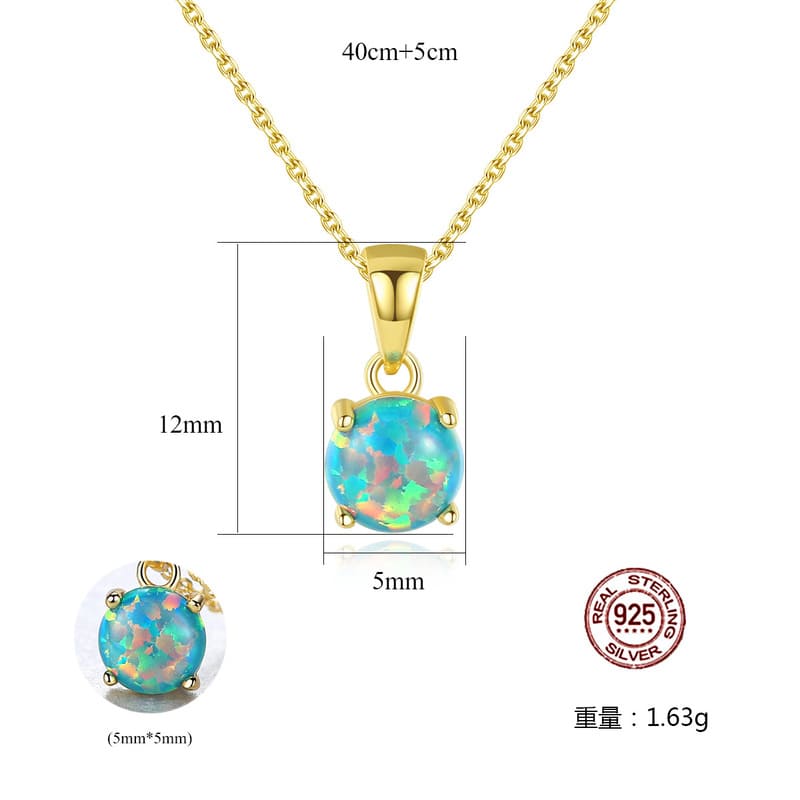 Simple Style 925 Sterling Silver Opal Pendant Necklace Gold