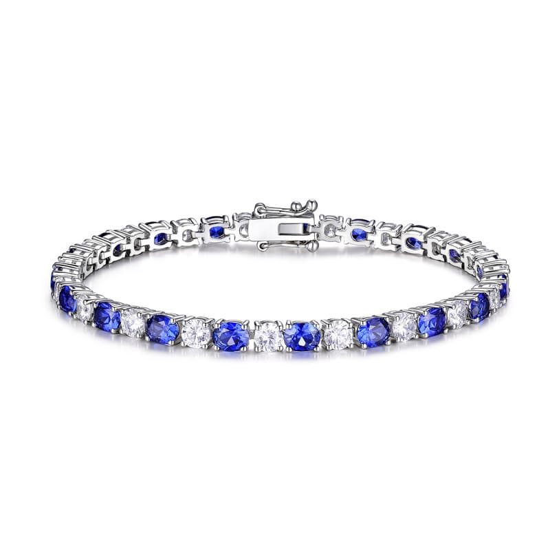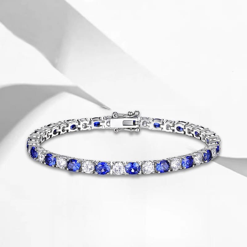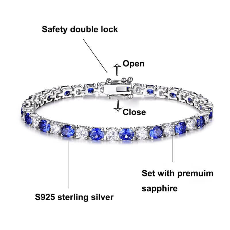 Luxury 925 Silver Blue Sapphire and Diamond Tennis Bracelet for Birthday Wedding Bridal Prom