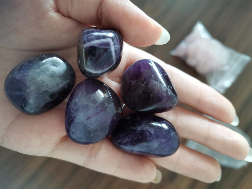 Föremål: Mörk ametist tumlade stenkristaller